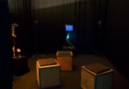 OSZILOT ist eine Soundinstallation und Performance an der ich mit Rolf Hellat tüftle. Aus Alltagsgegenständen werden pendelnde Klangobjekte. Über Sensoren wird eine archaische, physikalische Welt mit dem Kosmos digitaler Klangsynthese verbunden.