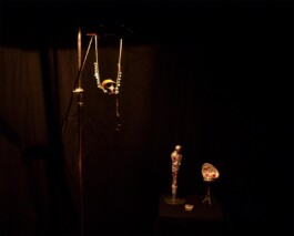 "Altar verlorener Dinge" ist eine kinetische 5-Kanal Klanginstallation aus kleinen Motoren, Fundgegenständen, organischen Überbleibseln, ausgedienten Elektronikkomponenten und Bewegungssensoren. Das Projekt ist eine Kollaboration mit Maximilian Kriegleder. Die „verlorenen Dinge“ sind als schwingende Pendel aufgehängt und kreieren durch ihre Bewegungen wandelnde rhythmische Muster. Die Töne entstehen nicht zufällig, sondern sind das direkte Ergebnis der Schwingungsfrequenz der Pendel-Objekte. Mal sind die Klänge naturnah: Insektengeräusche, Vogelzwitschern oder Froschquaken. Mal elektronisch mechanisch. Manchmal verschmelzen die Klangwelten, so dass nicht klar ist, ob es sich nun um elektronisch generierte Töne, oder organisch-tierische handelt. Die Arbeit befasst sich mit Natur und Technologie, Vergänglichkeit und Transformation, bis hin zu der Frage, wie sich diese Themen miteinander verweben.